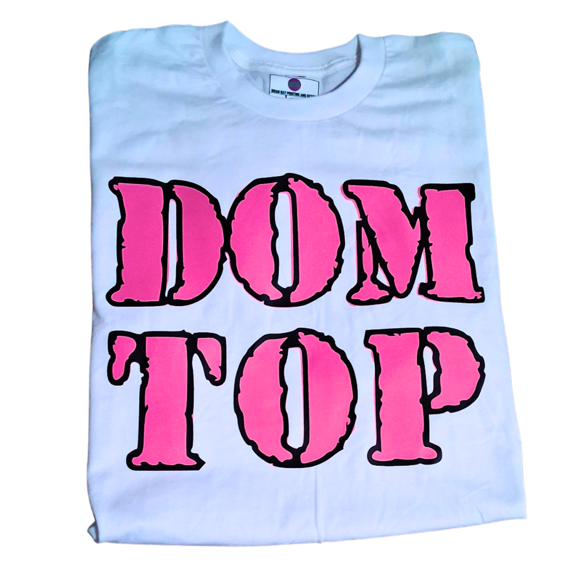 Make a bold statement with the Dom Top T-Shirt, featuring 'dom top' in vibrant pink stencil font on a classic white tee. Designed to celebrate LGBTQ+ identity, this shirt merges masculine energy with playful pride. Crafted for comfort and style, it's perfect for expressing individuality and embracing your unique vibe.